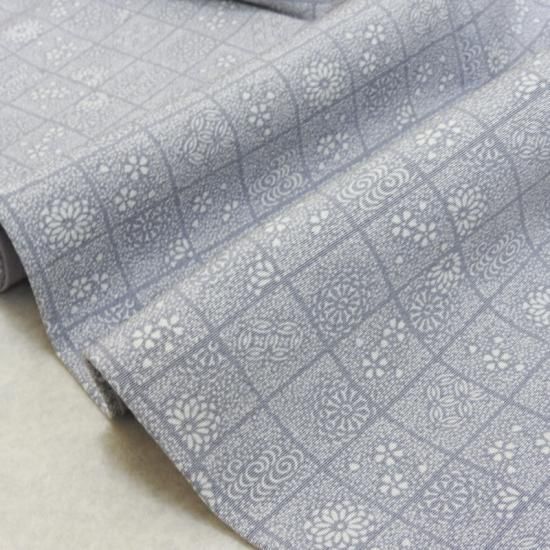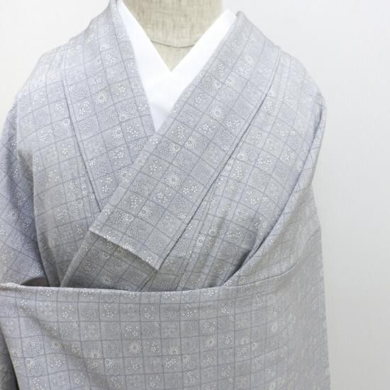 市松格子の中に花を染め付けたとてもクラス感のある染色です。