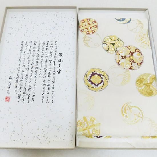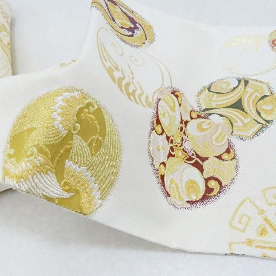 1本で様々なシーンをカバーいただける伝統文様、宝尽しを織りなしたお勧めの一品。