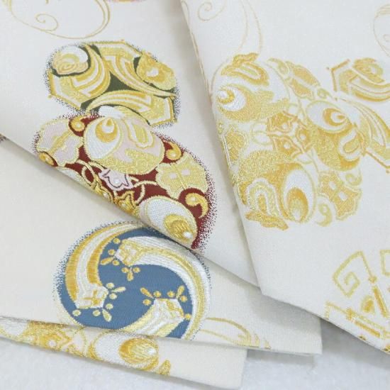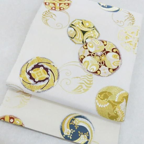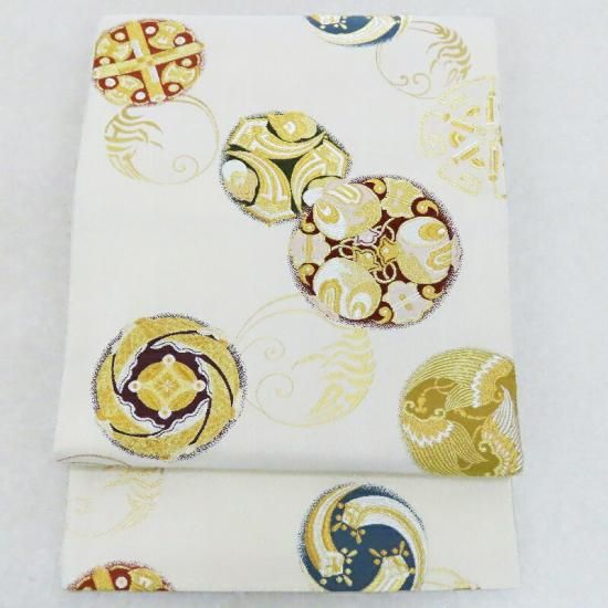 乳白色の帯地には極細な銀糸が織り込まれています。 ほのかに輝く艶を感じる上品な帯地です。