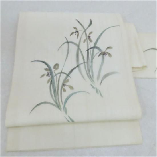 【生紬 手織り 手描き染 九寸名古屋帯】