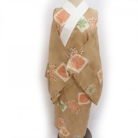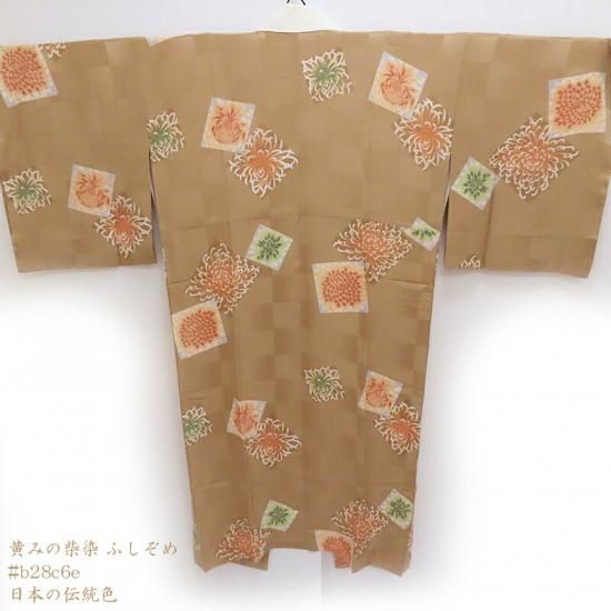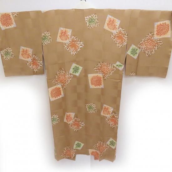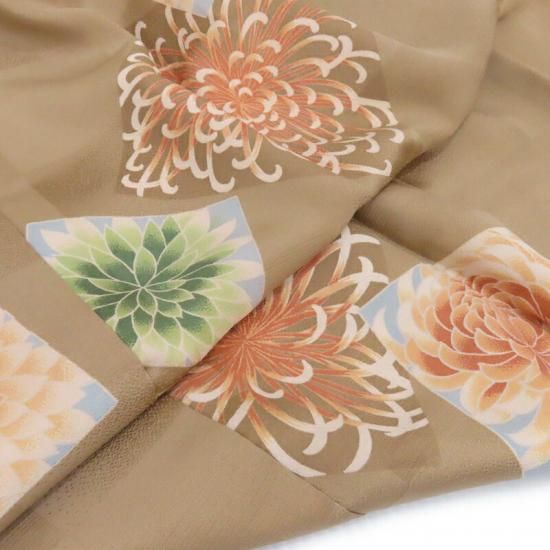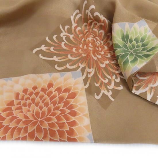 大きな市松格子の中に大菊文様を散らし染めにしています。