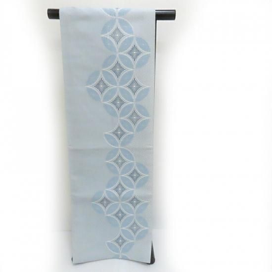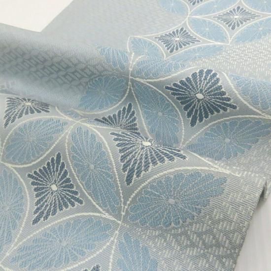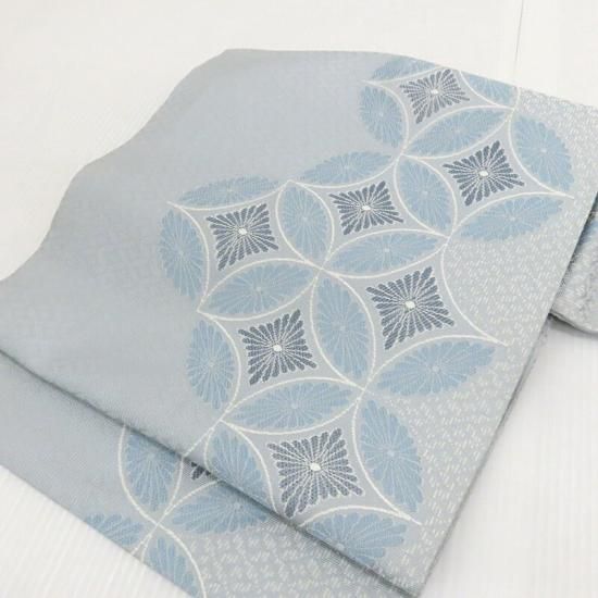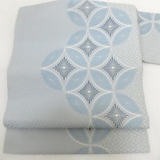 吉祥文様を代表する七宝文様と花菱文様を一つの文様となした清楚な名古屋帯。