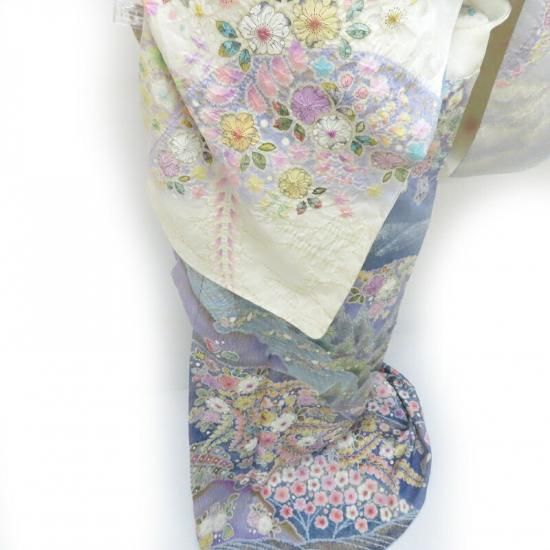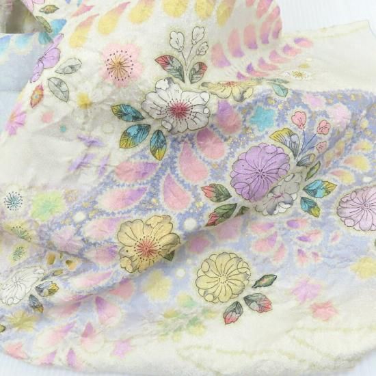 生地のお色が薄く淡い御色ですので何色の帯を合わせていただきましても綺麗に馴染みます。