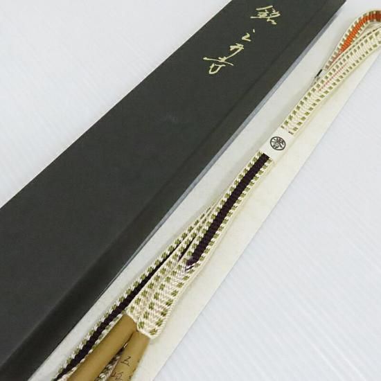 経巻の紐の細かな目の柄をもとに鎌倉時代武家の内職として発達して鎌倉組を用いて組み上げた紐を「三井寺」と称します。色彩も総じて古典の彩色にて習い仕上げた組紐です。帯締め1本でこんなに雰囲気が変わる?と言う事を如実に教えてくれるそんな一品です。