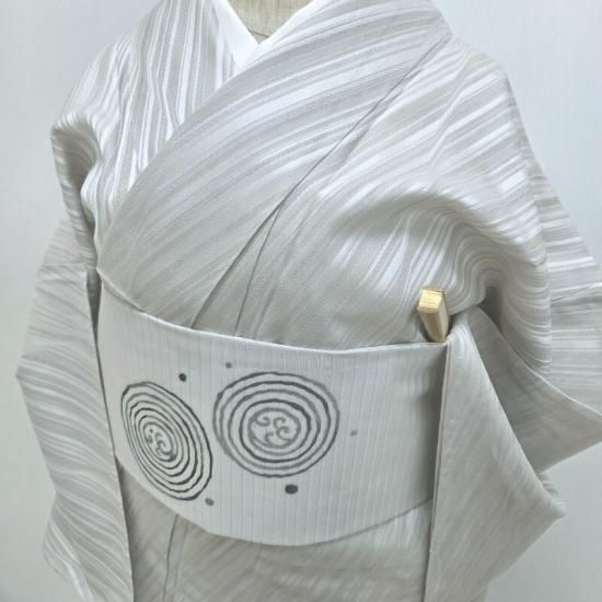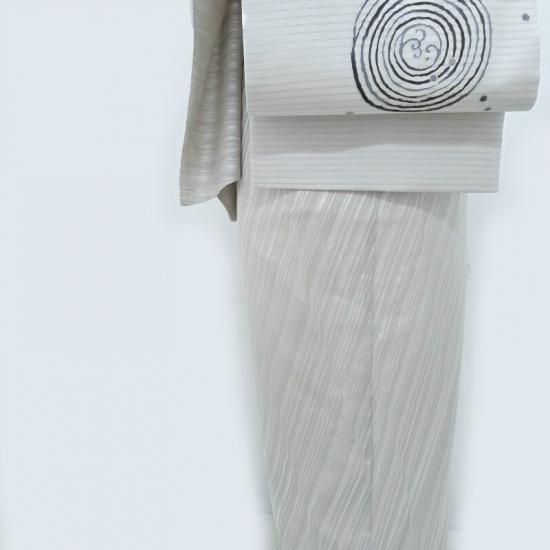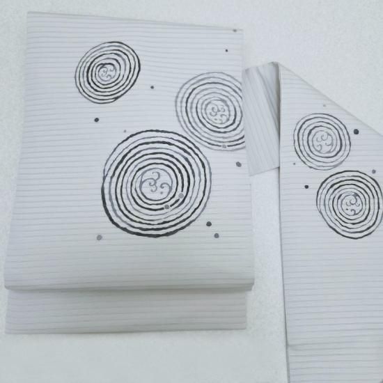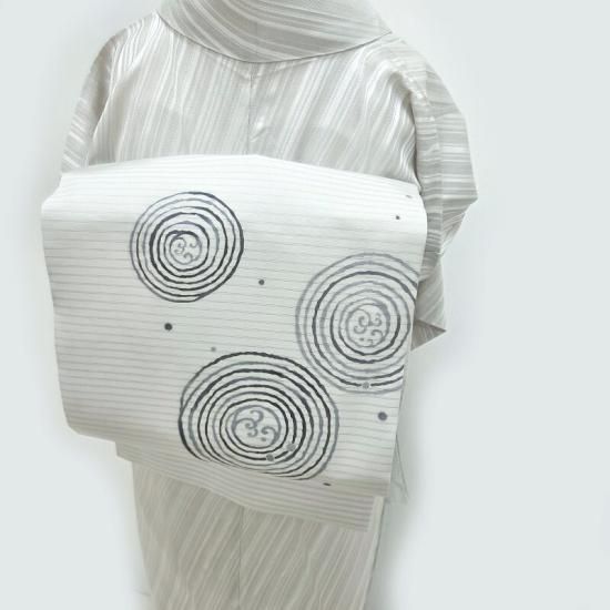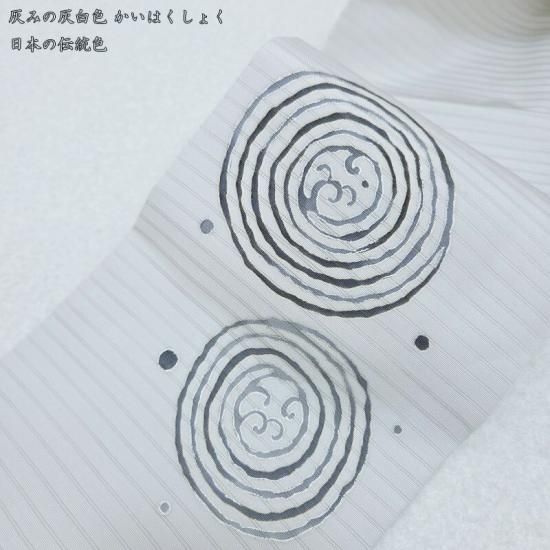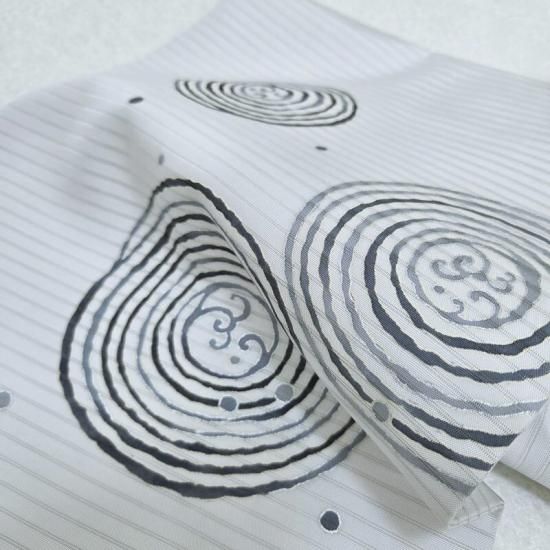 灰白色の地に染められた渦巻は一石を投じ水紋が広がる水辺をイメージしていただけるのではないでしょうか。