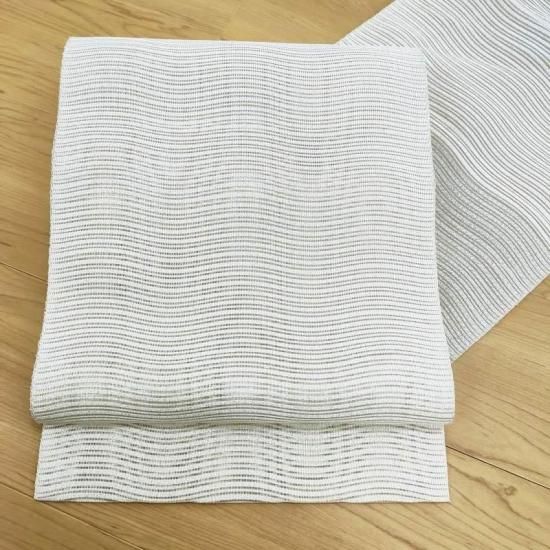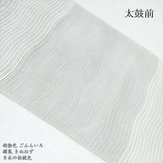 太鼓は白地で胴前だけにお色を置き織りなしています。静かなお人柄を映すような端正なお姿をコーディネート頂けます。まずはお手持ちの夏の小紋からいかがでしょうか。