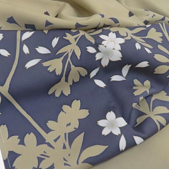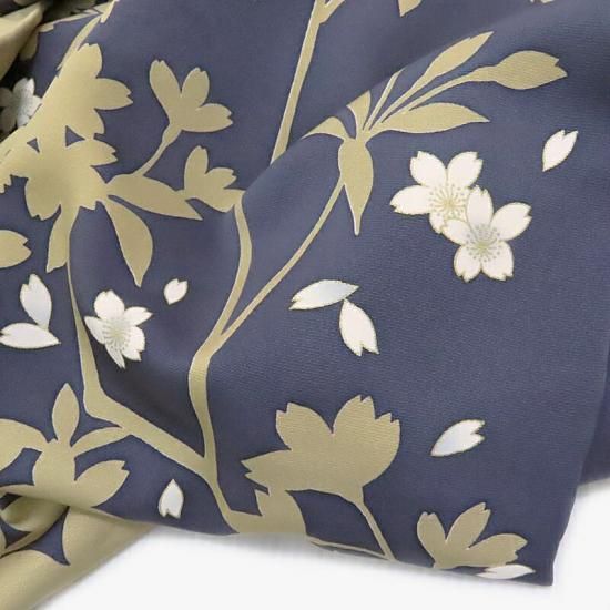 開花した桜、まだ蕾の桜、花びらに変化した桜、光と影を想像させるその全体図には心血を注ぎ込んで染め上げる高い完成度がご覧いただけます。