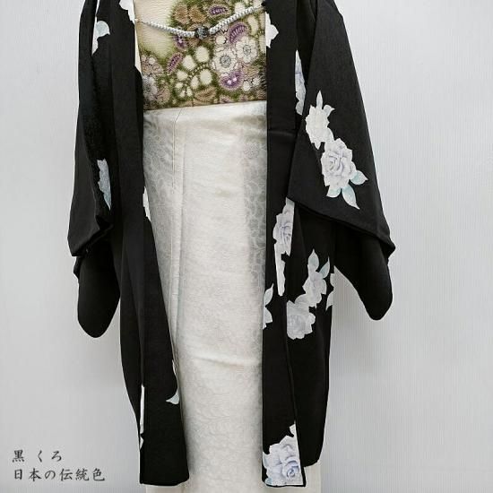 変織の地に薔薇を優雅に染め上げたエレガントさが生える長羽織です。