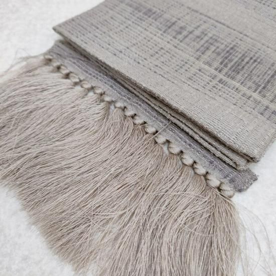 染め帯が多い半幅と言うカテゴリーの中で重厚に織りなした紬織の半幅です。