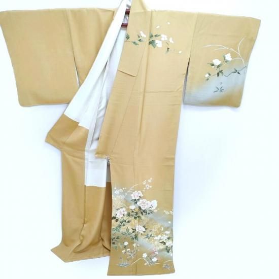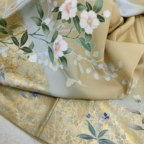 賑やかな発色は望まない、裾元、袖元にほのかな光を与えお召になられる方を主人公とする絶妙な配慮が伺えます。