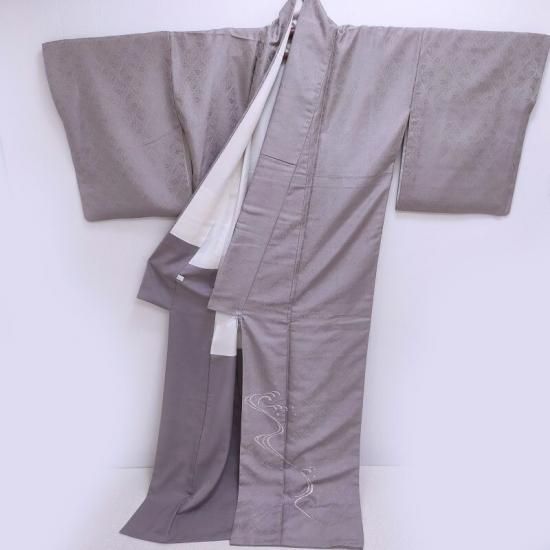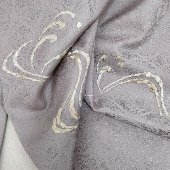 女性らしい上品なお色ですのでご年齢も問いません。縁起の良い波間文様を贅沢な手刺繍であしらいました。帯合わせ次第で末永くお召いただける品質です。
