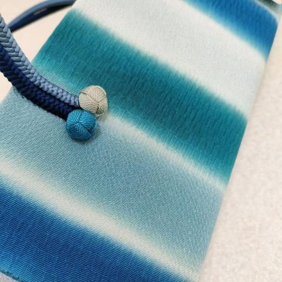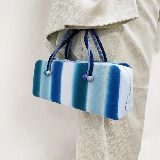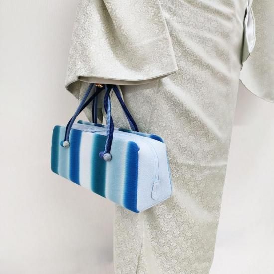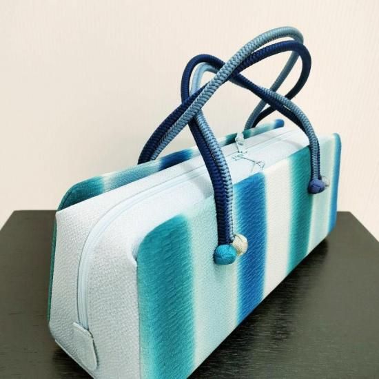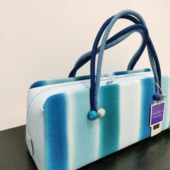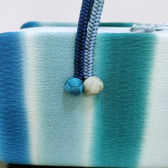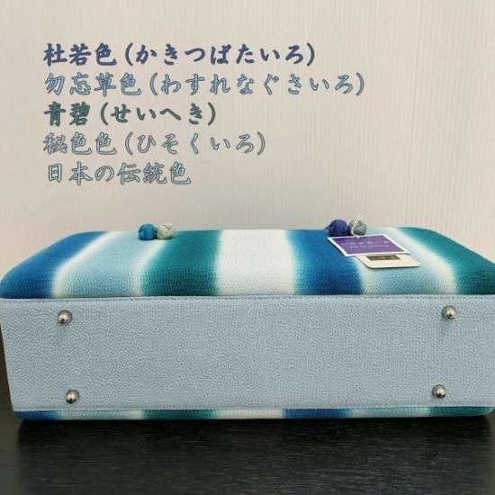 • 衿秀 和装バッグ 利休バック 【横長 小田巻手 ぼかし】着物バック 正絹 日本製 和装小物 和小物【青碧色】(eh-bw)