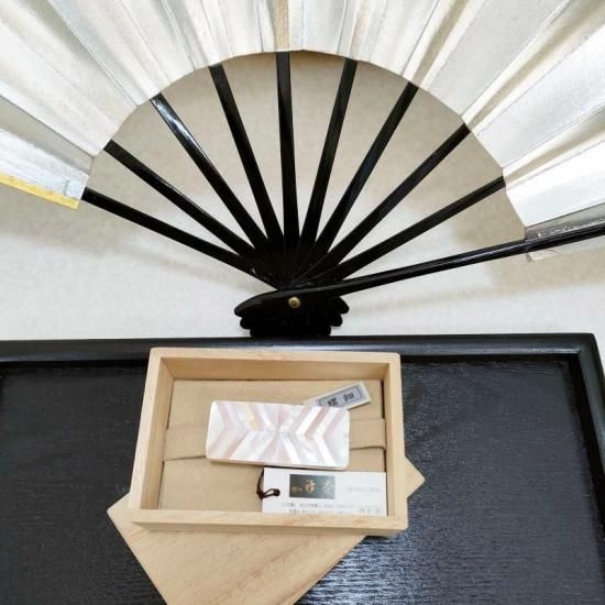 天然宝飾として長くご愛用頂ける"螺鈿細工"の帯留めです。