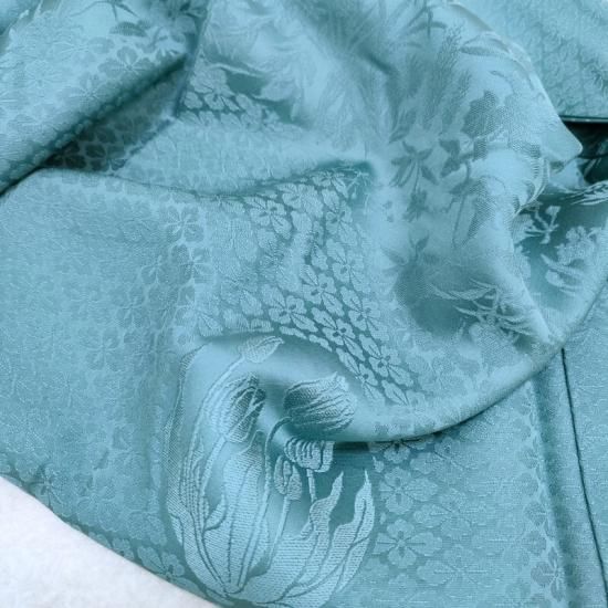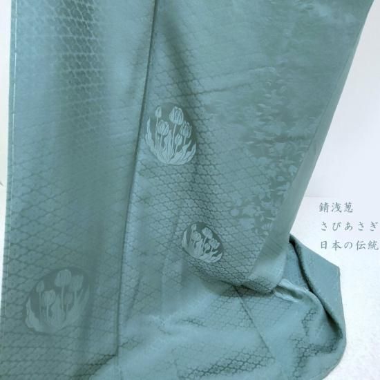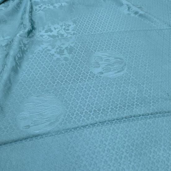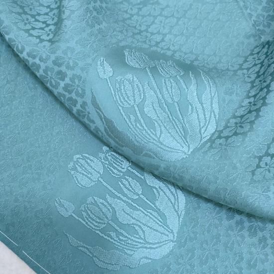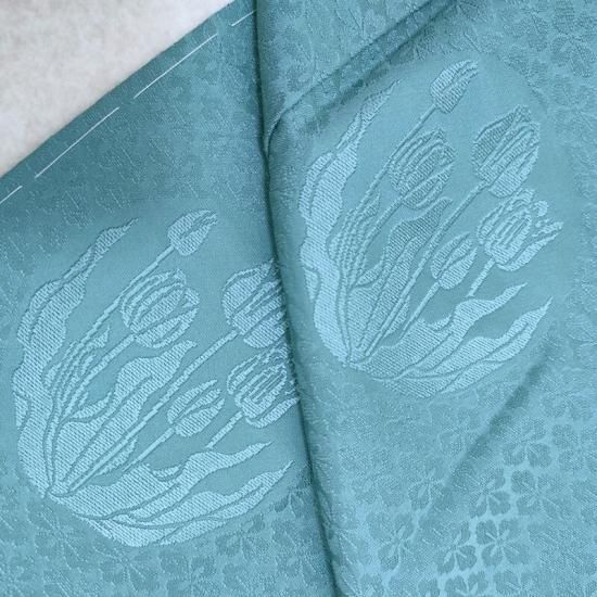 お顔元は柄を少なくお足元に重心を置いた大変落ち着きのある無地絵羽です。穏やかで繊細なチューリップ文様を絵羽に織り込んでいます。