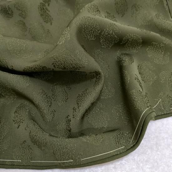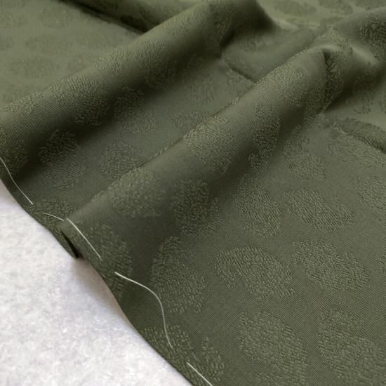その糸を用いて京都、伊と幸さんが丹精込めて紋意匠織りに美しく無地に染め上げた一品。