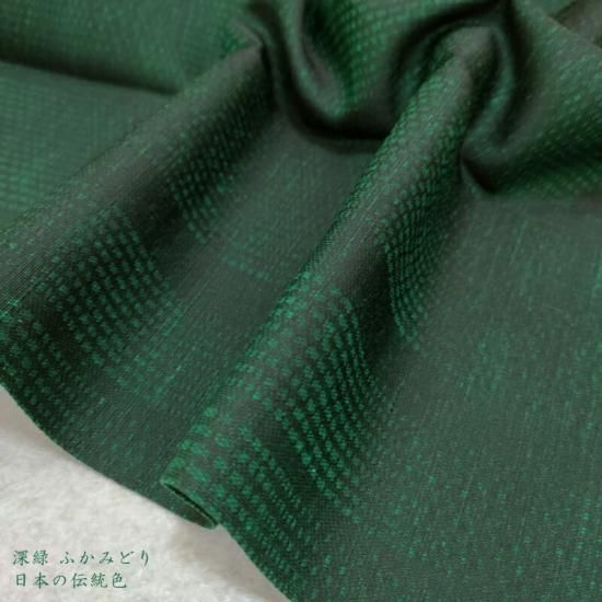 二色の色糸だけで織りなす玉蟲織はシンプルな意匠の中に存在する発色の美しさです。染物にはない織紋特有の文様の浮き沈みはとても綺麗です。