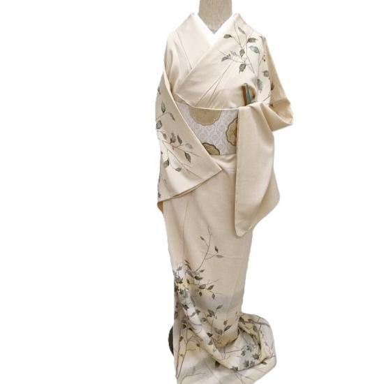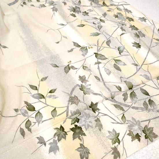 まるで一枚の絵画のごとく木立の実と花を手描き染めで描いています。