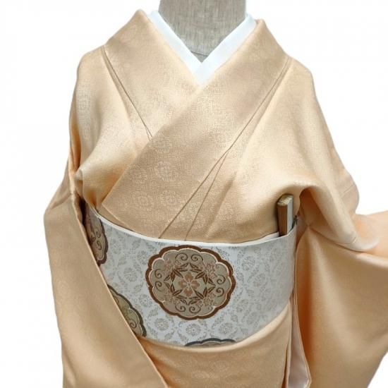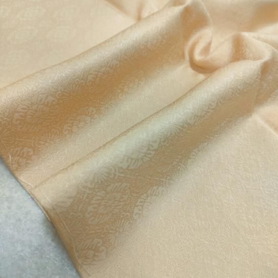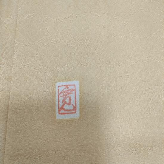小葵紋が生地一杯に広がります。 蜂蜜色のとても穏やかな地色はずっと先にもお召いただけるかと思います。