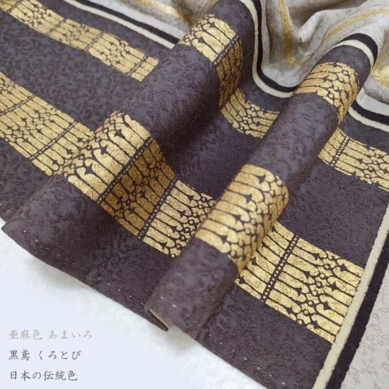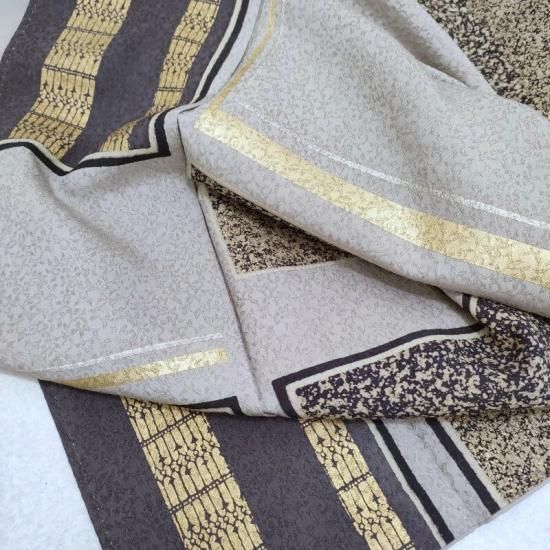 シンプルな色使いの中に計算された地紋との兼ね合い、そして静かに配されたゴールド色の配置。