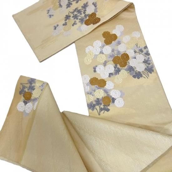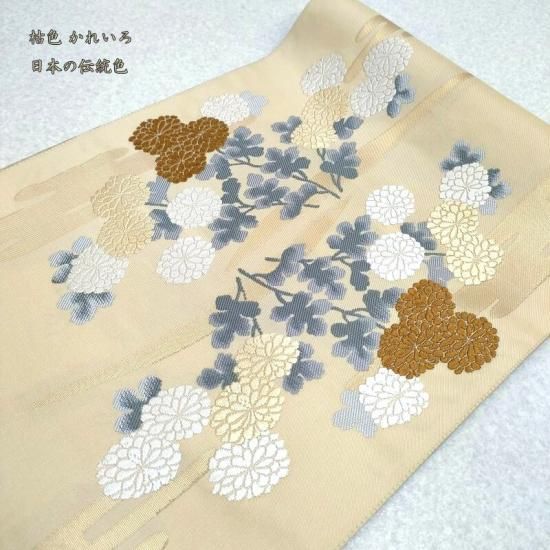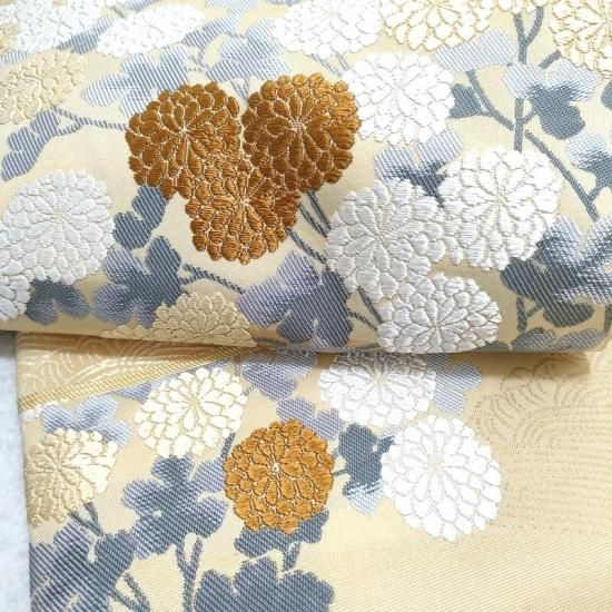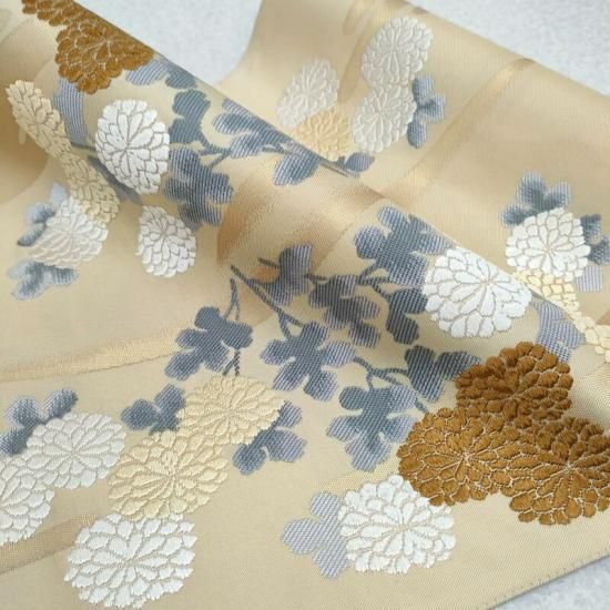 悠久の庭と言う繊細な菊花文様を織りなした作品。