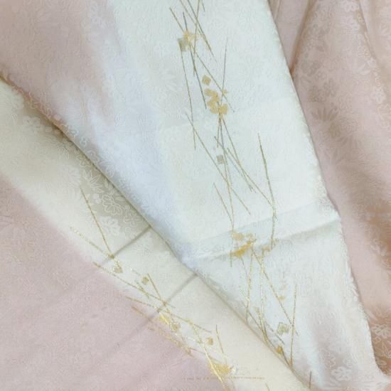 金彩染めでそっと身頃に置かれた松葉文様に日本の吉祥文様の祝儀意識も感じられご覧になられる方々にも心地よく映るのではないでしょうか。
