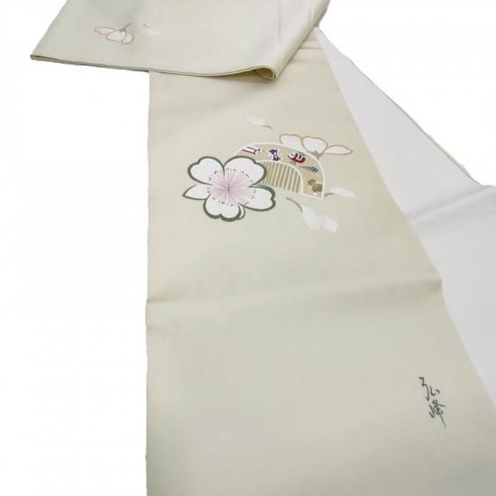 名古屋帯ですので使い勝手の良さは言うまでもなく塩瀬の本加工染色ですので末永くご愛用頂けるかと思います。
