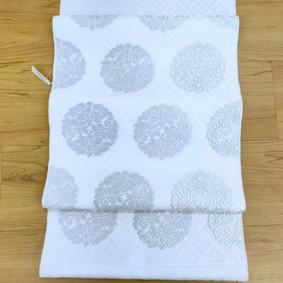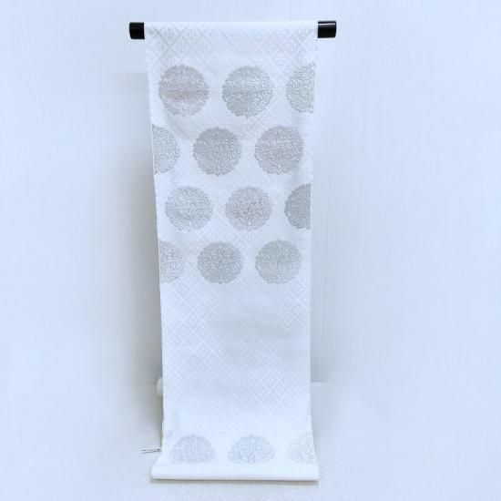 河合美術織物 「無料御仕立サービス」明治41年創業 西陣織唐織 【名品有職鶴藤丸文】九寸名古屋帯