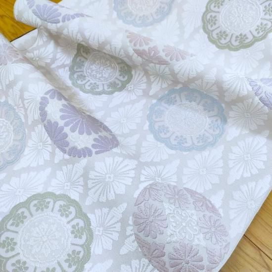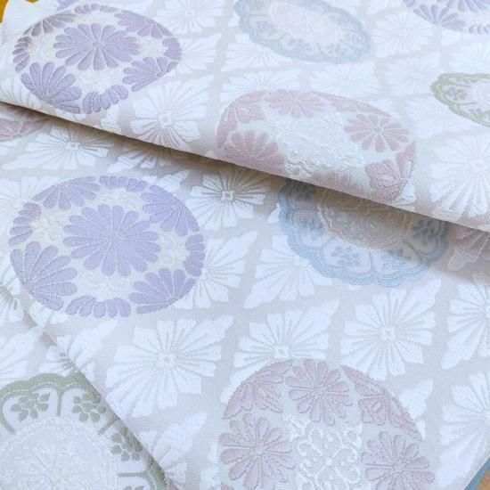 同世代でのお集り、父母会、コンサート、観劇、社会性のあるお集りなどにお勧めしたい唐織の名古屋帯です。