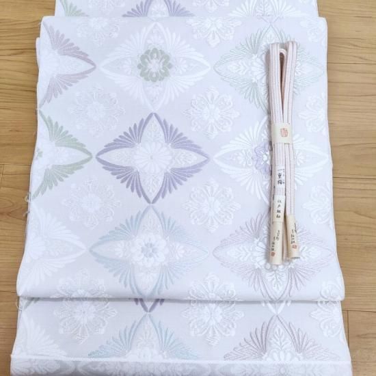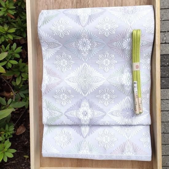 • 名古屋帯 唐織 新品 志都香 西陣織 九寸名古屋帯 順フォーマル 正装 茶道着物【菱菊綾紋】 (3469)