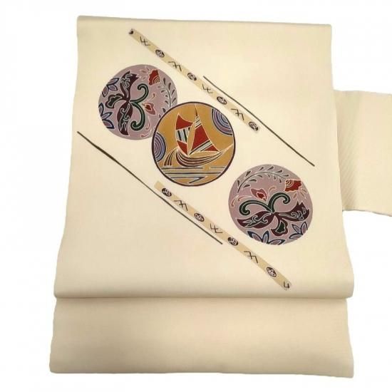 小紋や紬など気軽な日常のお出かけからご提案できる本加工の染めの塩瀬九寸名古屋帯。
