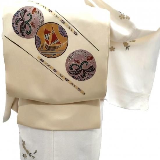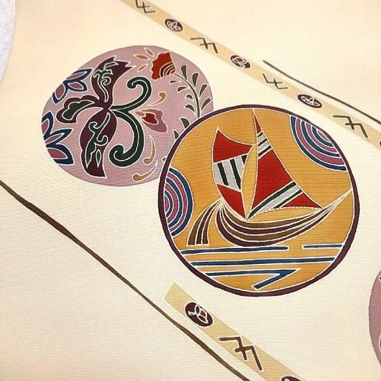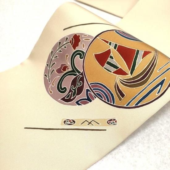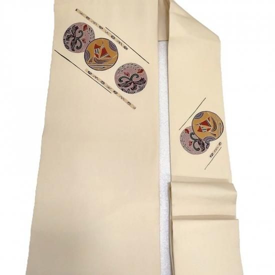 優しく上品な地色ですので何色のお着物にも合わせて頂けます。
