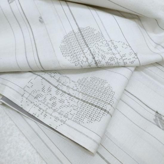 縞文様と雪輪散らしがすっきりと映える大人っぽいデザインです。
