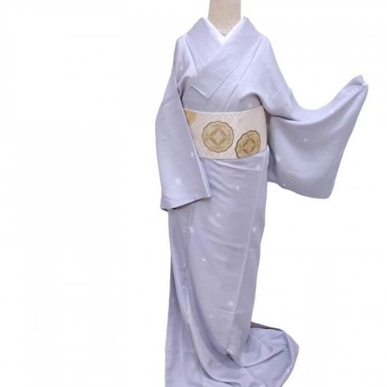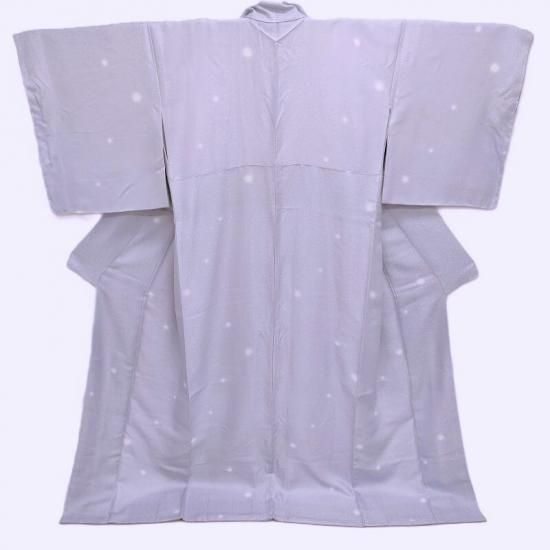 御覧の通り静かに白染文様を置いた飛び柄ですので帯を自由にコーディネート頂けます。
