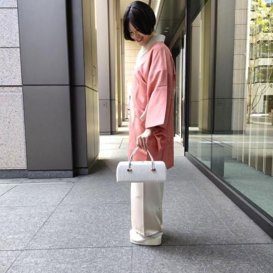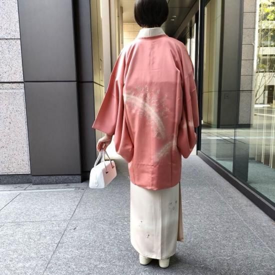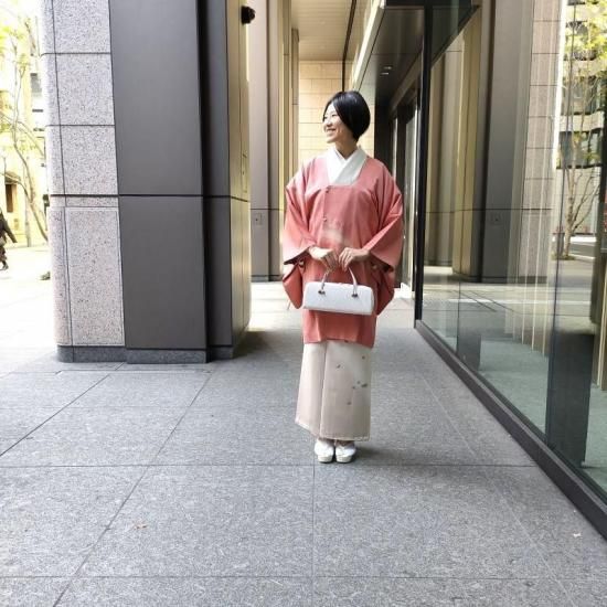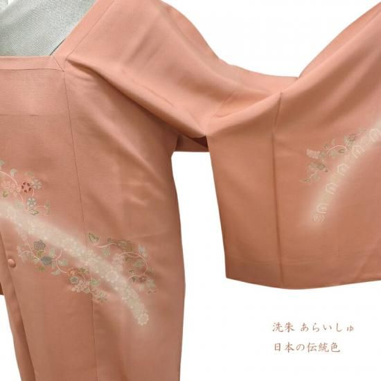 柔らかい女性らしさが香る洗朱色はお幾つになられてもこの先ずっとお召いただけるかと思います。