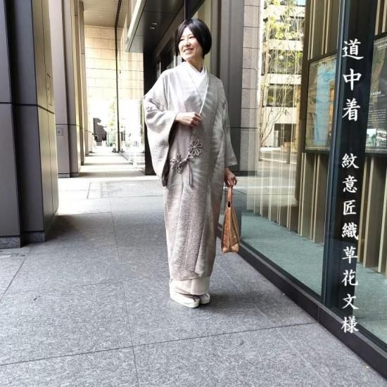 普段着から正装までお召いただける贅沢な紋意匠織の道中着です。