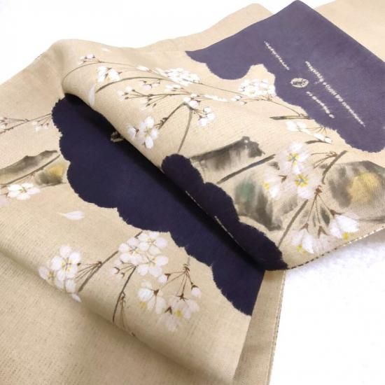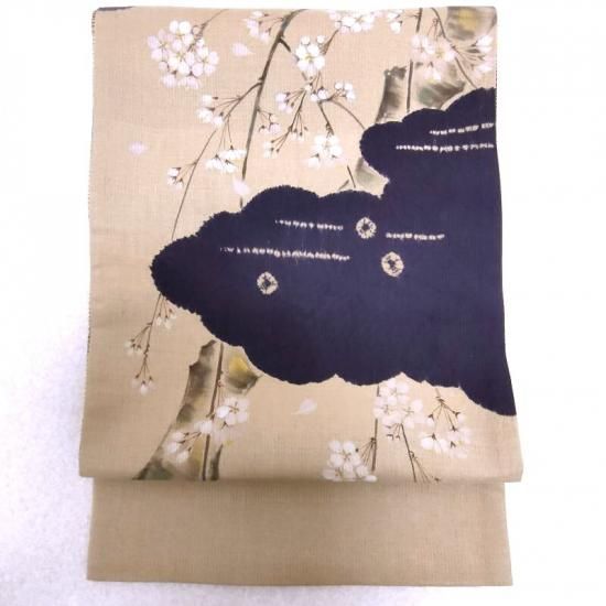 風情溢れる枝垂れ桜を筆書きと絞り染で仕上げたお洒落帯です。