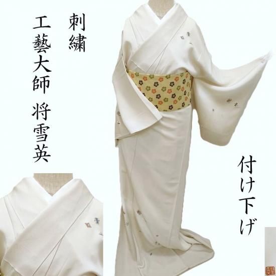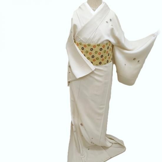 今回は優しく穏やか練色の地に繊細可憐な刺繍をあしらった付け下げです。