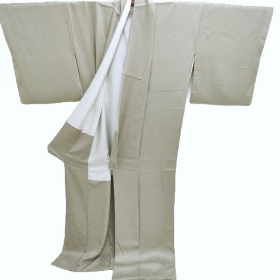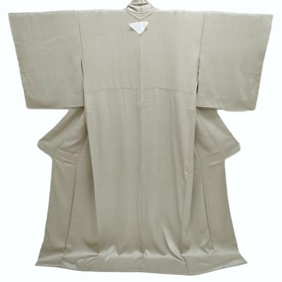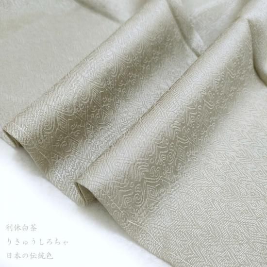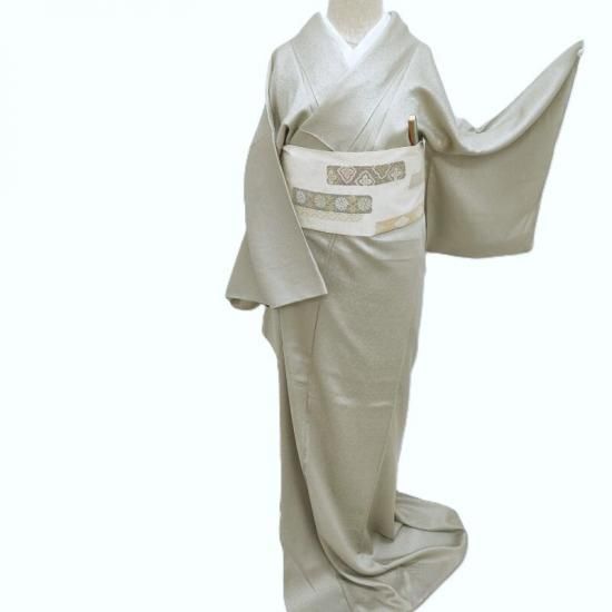 利休白茶色の静かな発色はお顔元がフラッシュすることなく自然な華やかさをご覧頂けます。帯合わせ次第で多様なコーディネートをお楽しみ頂けます。