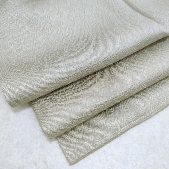 先糸染の重厚な織紋は造形物のごとく文様を浮き沈みさせて見せてくれる特徴がございます。