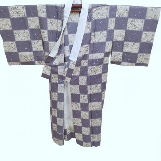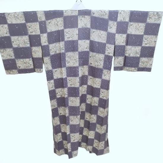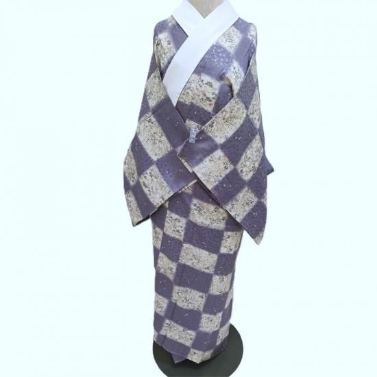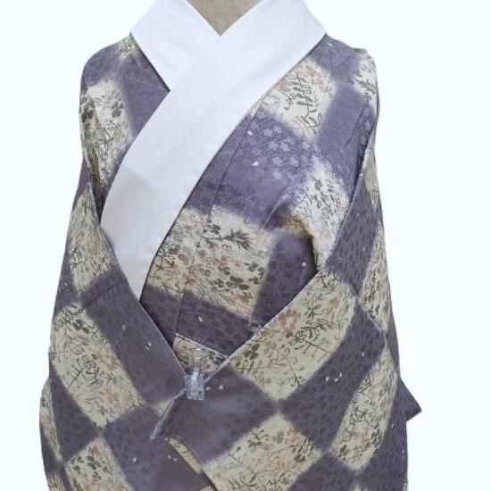 しっとりと上質感がうかがえる絹地に市松草花文様を染め上げた長襦袢。