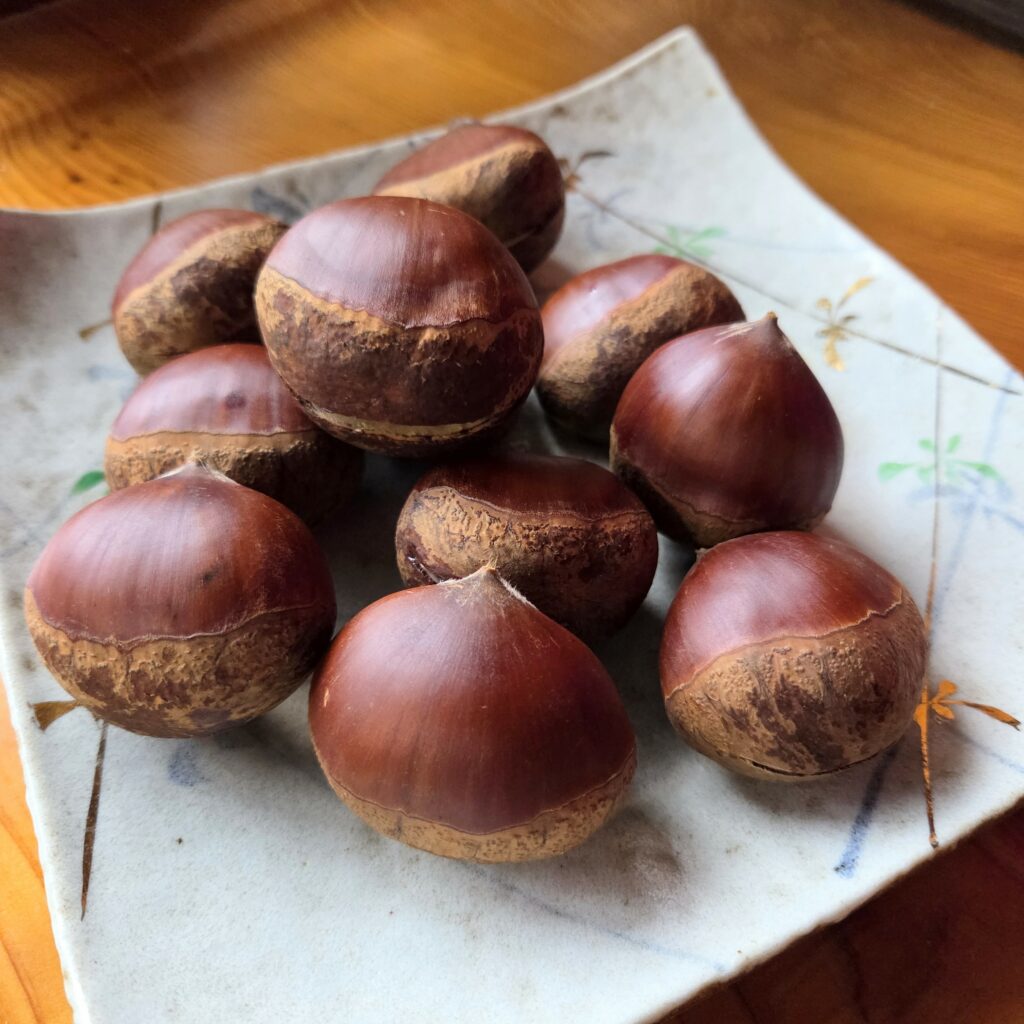 参道で初物の「丹波栗」を買い皆様に秋をお届けしよう!とワクワクし、沢山買いすぎて帰り道は重くて修行僧のようでした…😊